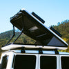 Ce tissu aluminisé limite fortement la chaleur intérieure en plein soleil tout en restant respirant pour réduire la condensation. Ainsi, les grandes fenêtres de la tente de toit rigide offrent des vues panoramiques à 180° et une ventilation exceptionnelle.